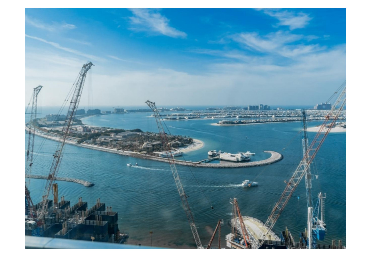High-floor balcony overlooking the Palm Jumeirah and the Arabian Gulf