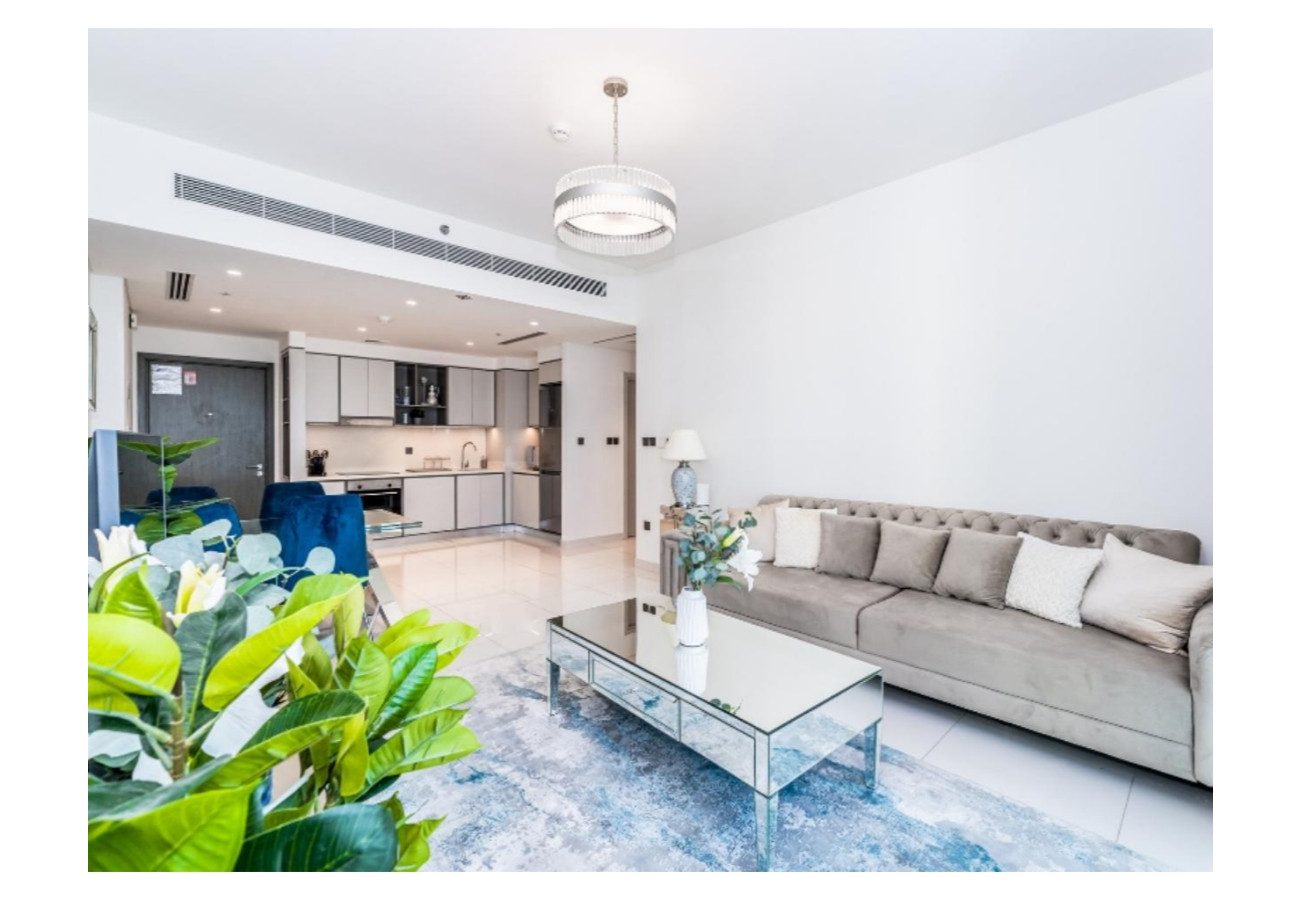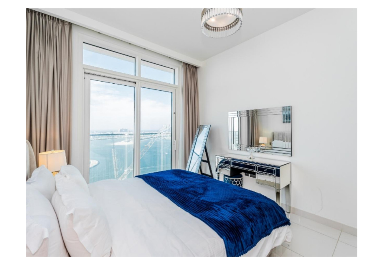 Experience luxury living in this modern 1BR apartment in Sunrise Bay. Enjoy sweeping sea and Palm Jumeirah views from the balcony, a cozy bedroom, stylish living area, and a fully equipped kitchen. Guests get access to a private beach, pool, gym, and parking. Perfect for a relaxing getaway, long stays, or business trips in Dubai Marina.